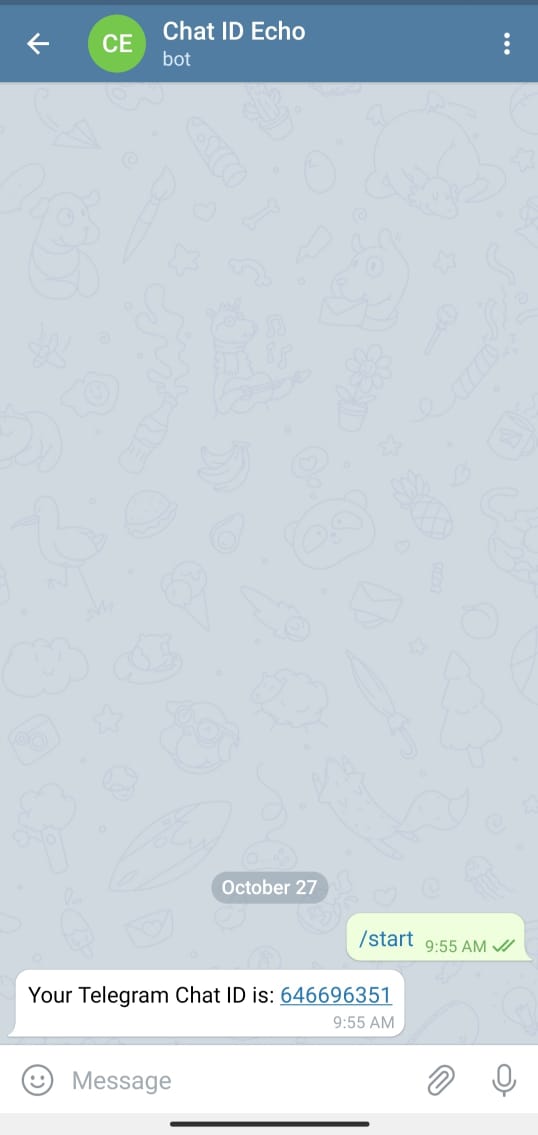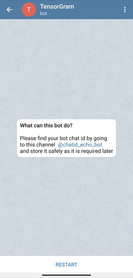 - Now go to Telegram app and search for @tensorgram_bot and join the channel by clicking on the chat.