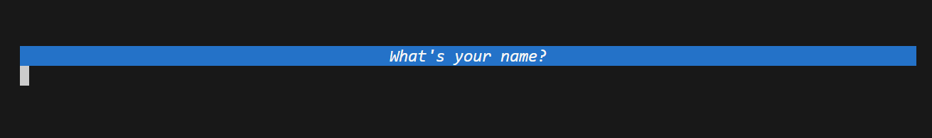 name = input(" What's your name? ", "white", "blue", "italic", "center", True)