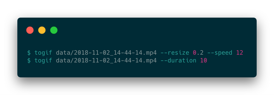 usage: togif [-h] [--fps FPS] [--speed SPEED] [--duration DURATION]