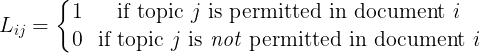 means that the document 1 is contrained to be topic 0 or 2 and document 4 to be topic 1. For the other documents all the topics are permitted.