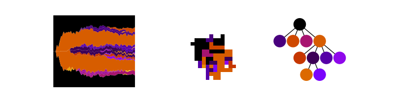 tumorfig can be used to create a Muller plot of the tumor's evolution, the 2D spatial organization of the tumor cells, and a clone tree.