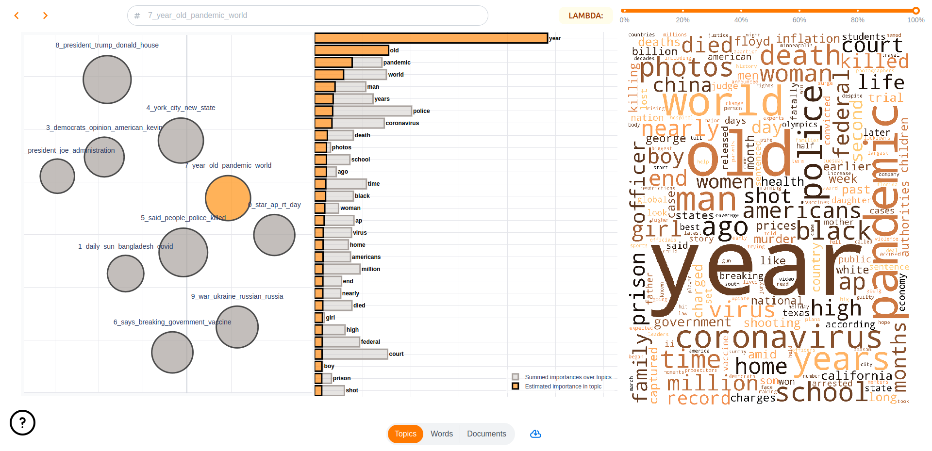By far the easiest way to visualize your models for interpretation is to launch the topicwizard web app.
