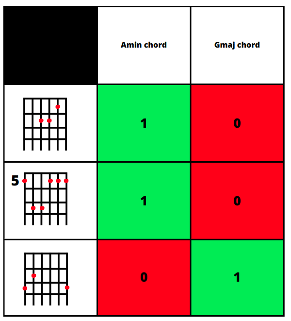 While exploring the notes, we also populate the emission matrix with 0's and 1's which correspond to the probabilites that a fingering produce a set of notes. It just does or doesn't.
