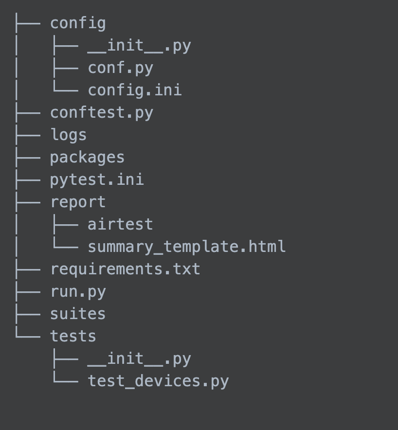 - 项目结构很清晰。在conftest.py进行一些初始化/参数化/清理工作,在suites/写测试脚本。
