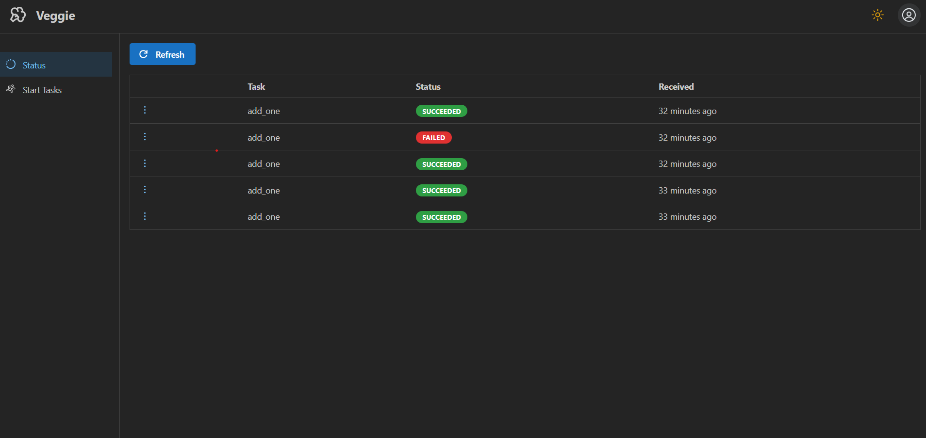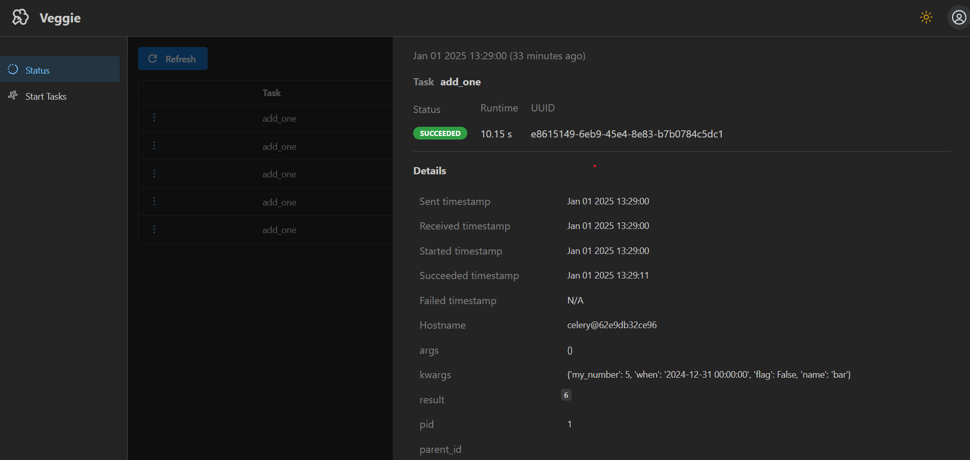 Check the status of past and running tasks:
