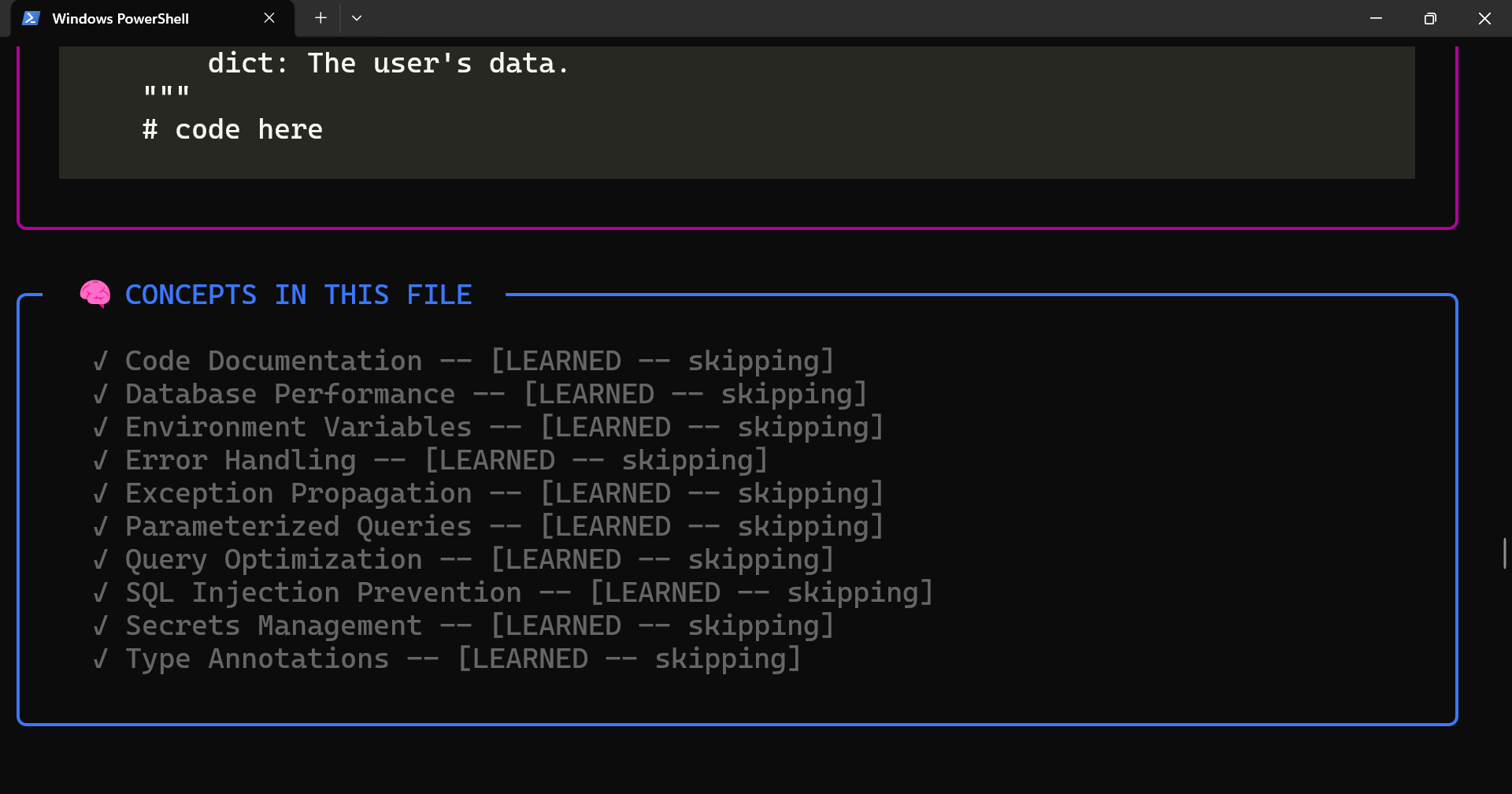 vibecheck examples/python_bad.py --learn
