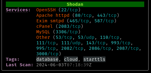 If supported by the terminal, the Services field is a clickable hyperlink that takes you to the Shodan web interface.