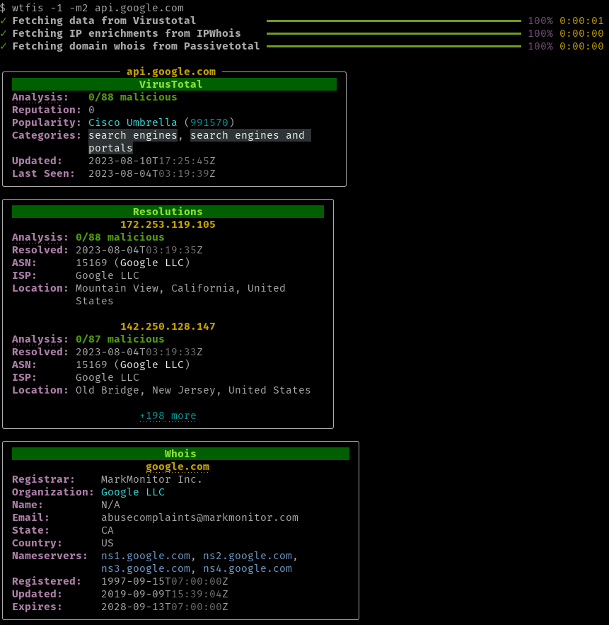 $ wtfis FQDN_OR_DOMAIN_OR_IP