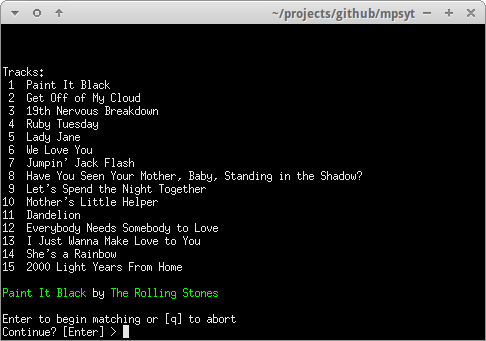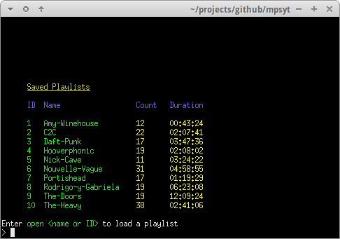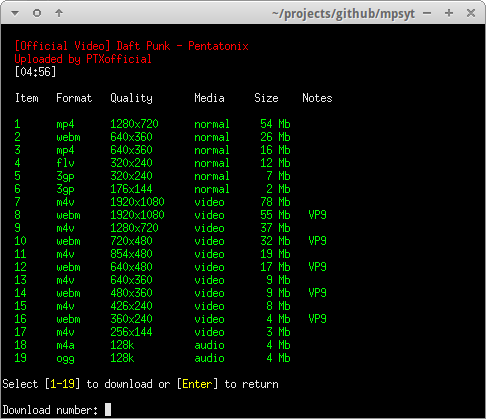 Config dir : /home/user/.config/mps-youtube
